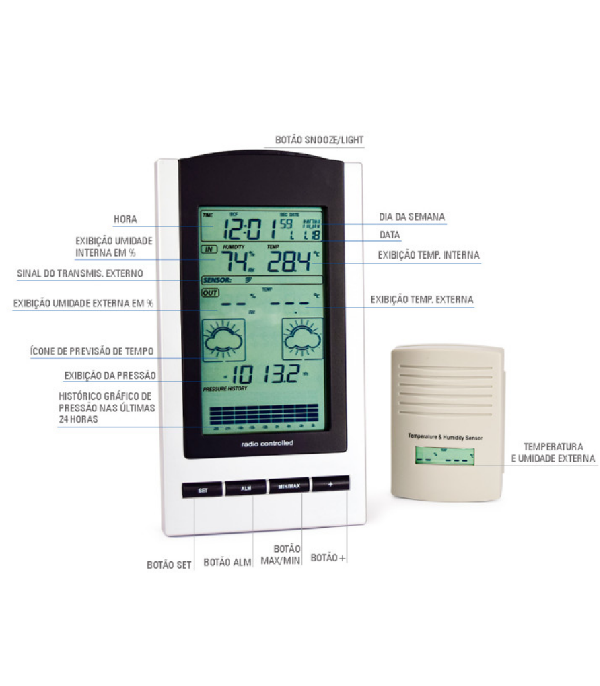 • Registro de máxima e mínima (temperatura, UR, ponto de orvalho, pressão atmosférica);